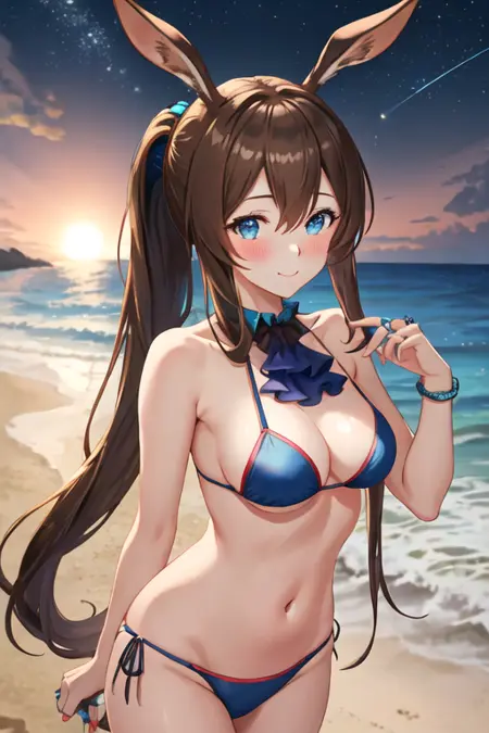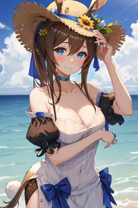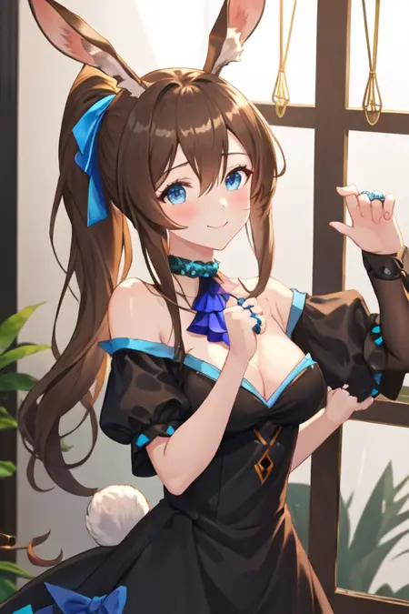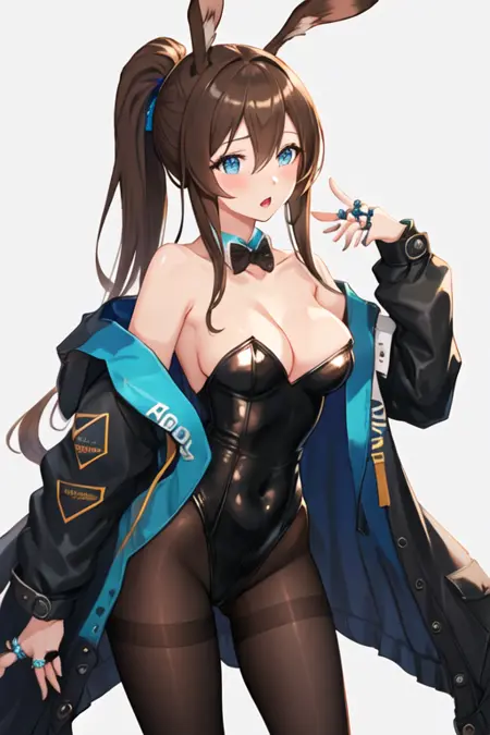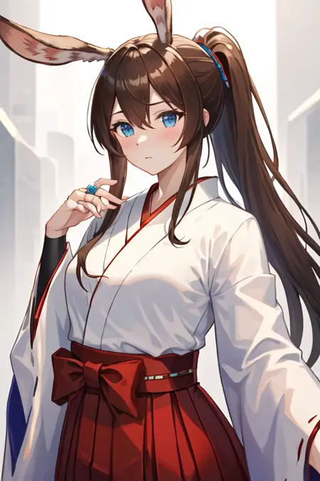 触发词为 amiya_arknights,精简标签为 animal_ears, brown_hair, rabbit_ears, long_hair, blue_eyes, hair_between_eyes, sidelocks, ponytail, very_long_hair。当某些特征(如发色)在某些情况下不够稳定时,您可以在提示词中添加这些标签。