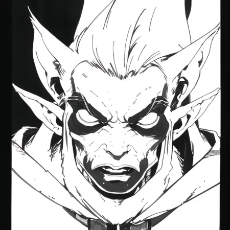 전체 데이터셋이 단색이었기 때문에 대부분의 출력물도 단색이 됩니다. 더 나은 출력을 얻으려면 monochrome을 강제로 지정하는 것이 좋습니다. 이 경우 도움이 되는 추가 태그로는 ink \(medium\), sketch, traditional art, concept art가 있습니다.