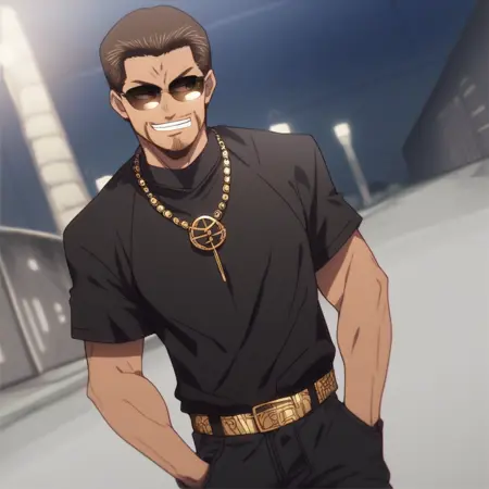 (( lora:kataoka\_tesshin:1 , kataoka_tesshin, piercing dark brown eyes, clear eyes, strict eyes, strong muscular toned body, manly, strong male, alfa male, light tanned skin, short brown hair, hair gelled back, short brown circle beard, chad male, charismatic male, ))
