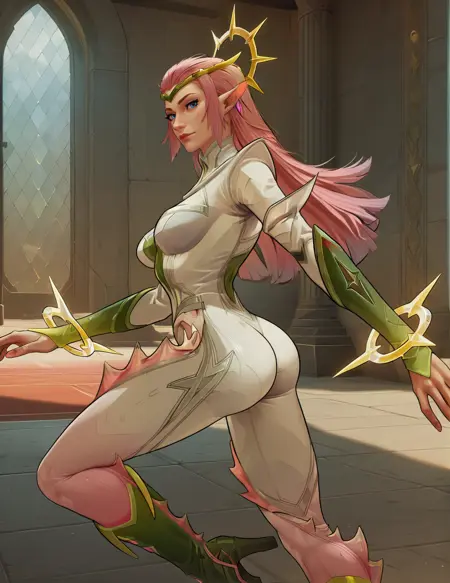 如果某个元素未能正确生成,请重复使用种子值,并通过将该元素括在“()”中来加强其表现,例如“((耳环))”、“(((粉色大腿鳍))”。