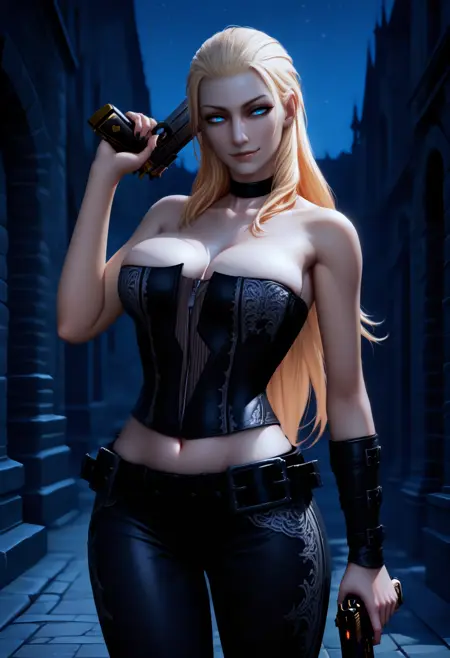 Optional tags: holding white handgun, holding black handgun, dual wielding