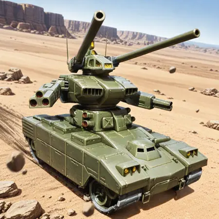 下半身が戦車にならない場合(Lower Body is Ground Vehicle:1.4),を強めにしてください。