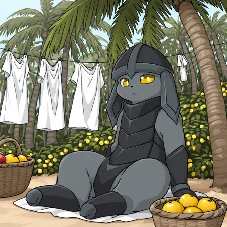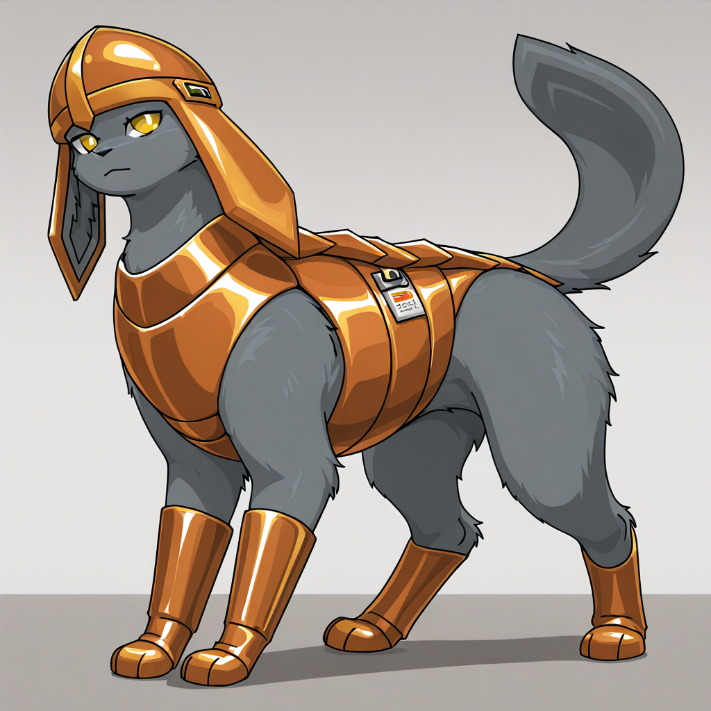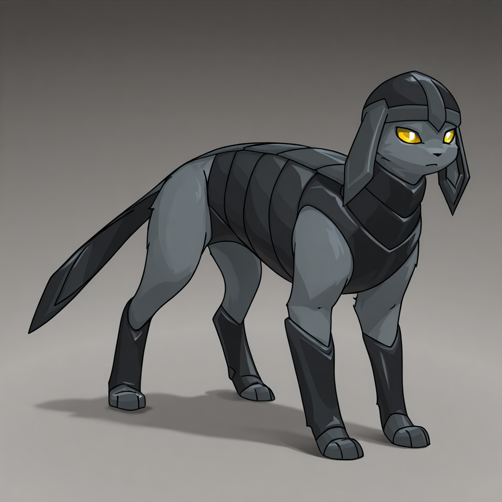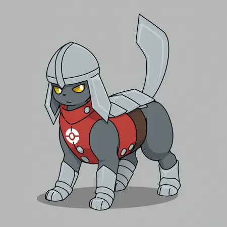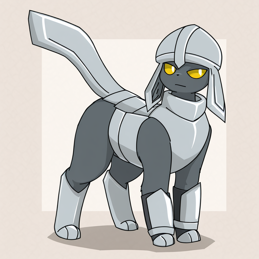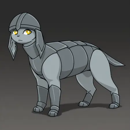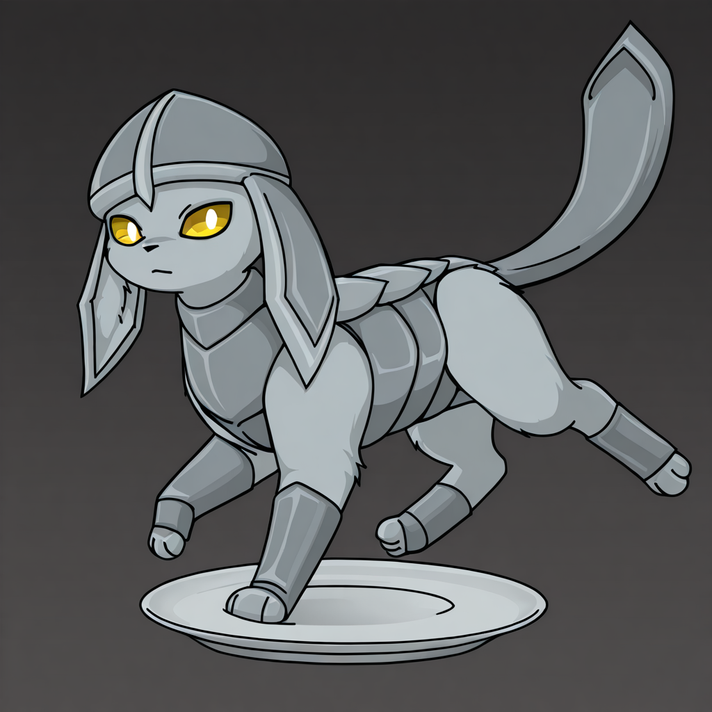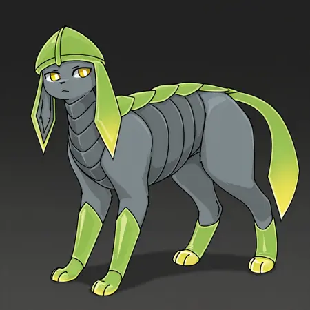 강철 타입의 이브이 진화형 갈바레온. 자연식 플레이트 갑옷이 몸에서 자라나며, 금속은 일반적으로 식이에 따라 영향을 받으며, 보통 검은색이지만 다양한 종류의 플레이트가 가능하다. 정기적인 광택 관리가 권장된다.
