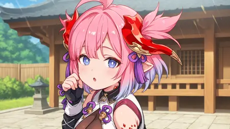 训练数据基于她平时的服装和其他一些插画。效果不错,但由于服装不对称,在不同角度下会出现一些一致性问题。她的手臂水晶是内嵌的,无需额外提示,但有时在她不戴手套时,手臂会显得非常红(取决于检查点)。