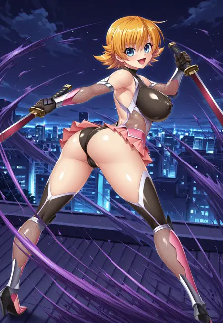 タグ: 伊川さくら、オレンジ色の髪、短い髪、ふんわりした髪、青い目、曲線的な体型、大きな胸