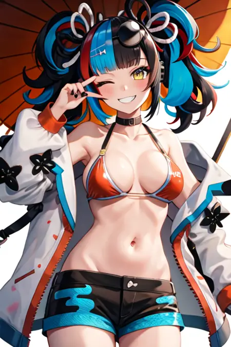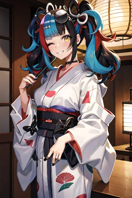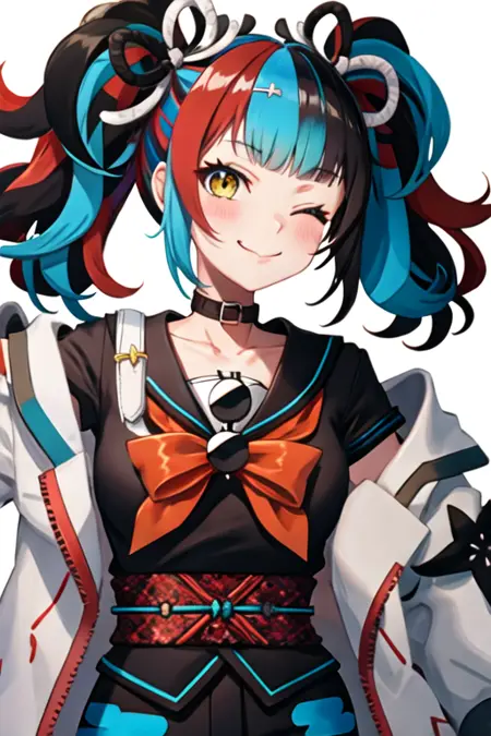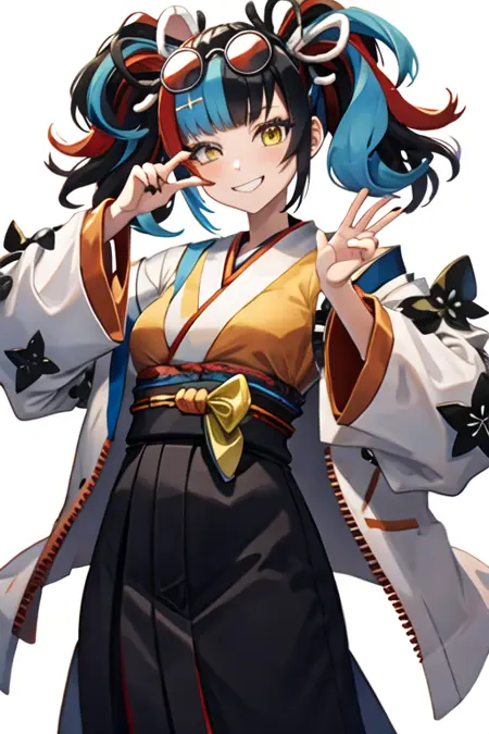 触发词为 sei_shonagon_fgo,推荐标签为:masterpiece, best quality, highres, solo, {sei_shonagon_fgo:1.10}, yellow_eyes, black_hair, multicolored_hair, twintails, red_hair, blue_hair, smile, sunglasses, bangs, hair_ornament, bag, blush, black_nails, breasts, bow, long_hair, one_eye_closed。