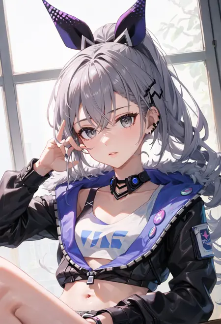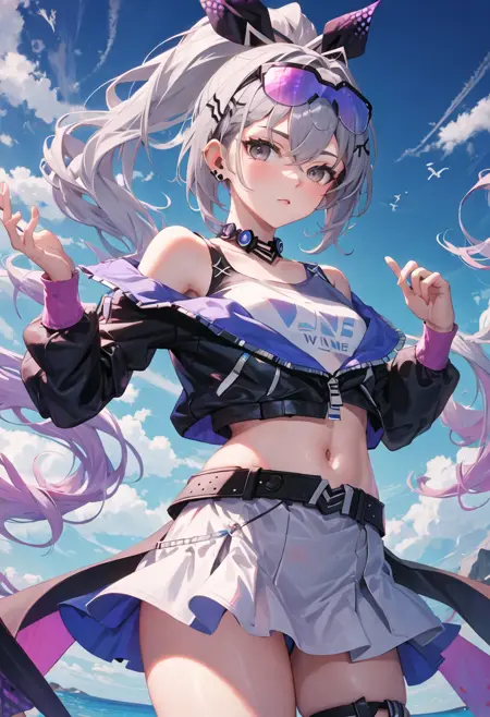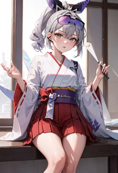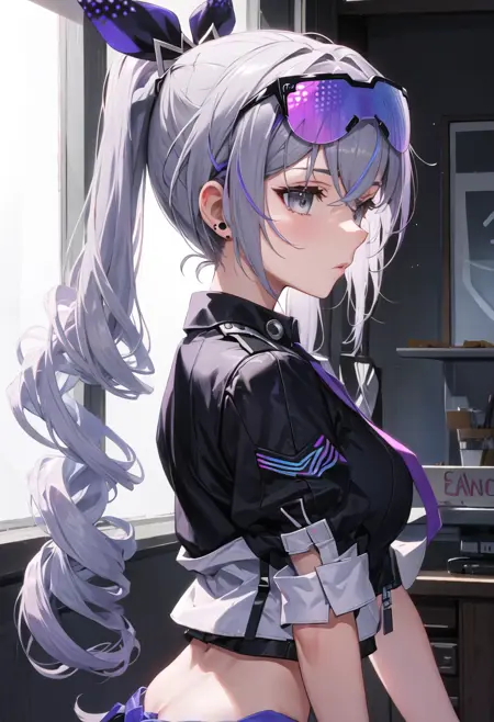 - The pruned character tags are grey_hair, long_hair, grey_eyes, bangs, eyewear_on_head, ponytail, drill_hair, hair_between_eyes, breasts, sunglasses, hair_ornament. You can add them into prompts when core features (e.g. hair color) of character is not so stable.