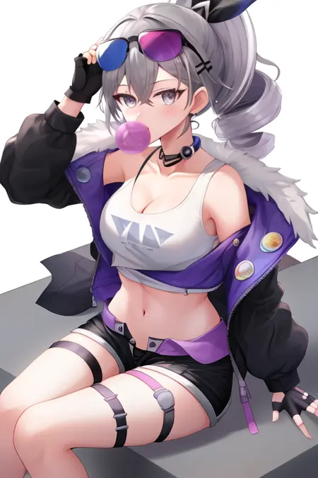 触发词为 silver_wolf_starrail,精简标签为 grey_hair, long_hair, grey_eyes, bangs, eyewear_on_head, ponytail, drill_hair, hair_between_eyes, breasts, sunglasses, hair_ornament。当某些特征(如发色)在某些时候不够稳定时,您可以将这些标签添加到提示词中。