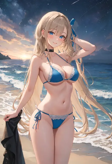- 已精简的角色标签包括:长发、胸部、大胸部、蓝眼、浅棕发、单侧遮眼发、光环、丝带、极长发、蝴蝶结、发带、蓝色蝴蝶结、痣、胸部痣、不对称刘海、蓝色丝带、动物耳朵、假动物耳朵、兔耳。当角色的核心特征(例如发色)不够稳定时,您可以将这些标签添加到提示词中。