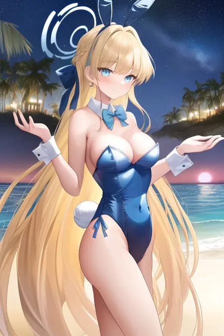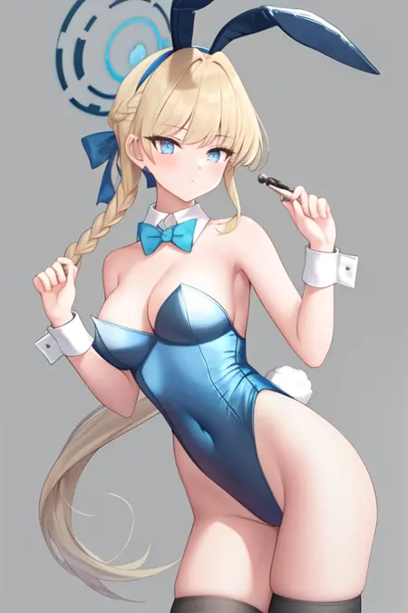 - The pruned character tags are blonde hair, blue eyes, blue halo, halo, bow, breasts, blue bow, braid, long hair, medium breasts, animal ears, fake animal ears, rabbit ears, very long hair, hairband, blue hairband, multicolored hair. You can add them into prompts when core features (e.g. hair color) of character is not so stable.