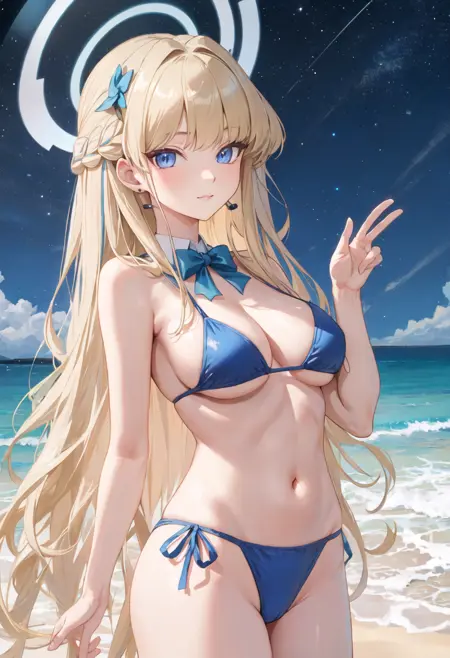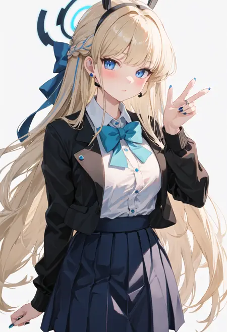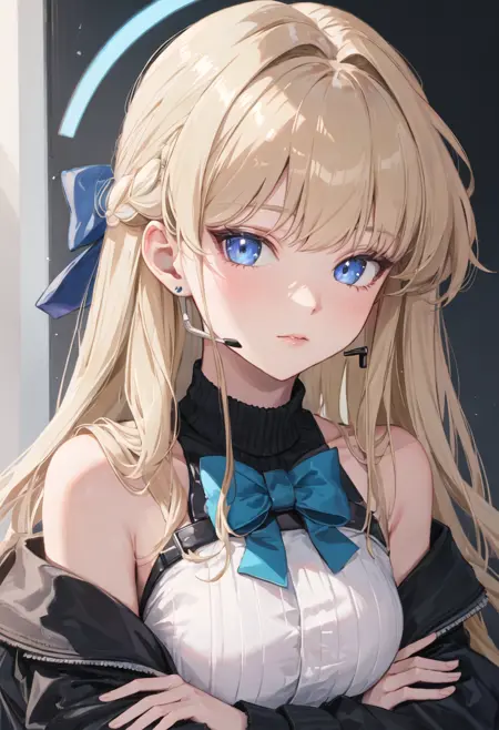 トリガーワードはtoki_bluearchive、省略されたタグはblonde_hair, blue_eyes, blue_halo, halo, bow, breasts, blue_bow, braid, long_hair, medium_breasts, animal_ears, fake_animal_ears, rabbit_ears, very_long_hair, hairband, blue_hairband, multicolored_hairです。ある時、一部の特徴(例:髪の色)が安定しない場合、これらのタグをプロンプトに追加してください。