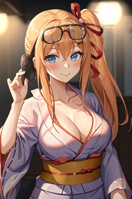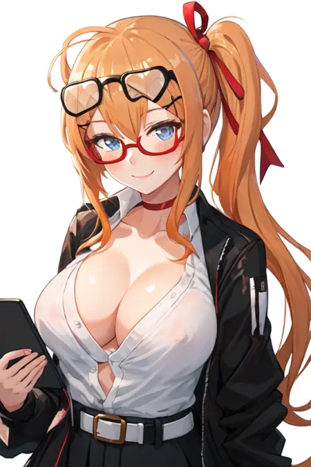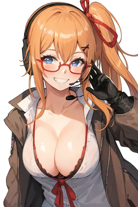 触发词为 kalina_girlsfrontline,推荐标签为:best quality, masterpiece, highres, solo, {kalina_girlsfrontline:1.15}, blue_eyes, long_hair, orange_hair, hair_between_eyes, breasts, side_ponytail, blush, ribbon, hair_ribbon, smile, eyewear_on_head, hair_ornament, bangs, large_breasts, red_ribbon, collarbone, cleavage。