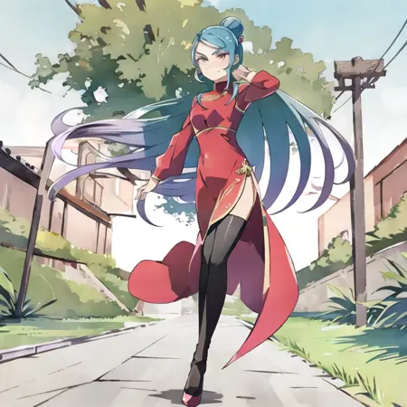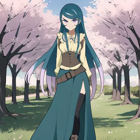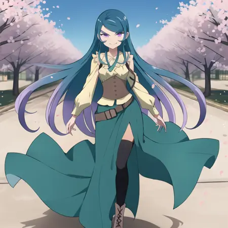 머리카락/특징: 긴 머리, 매우 긴 머리, 보라색 머리, 파란색 머리, 보라색 눈, V자형 눈썹, 스윕 앞머리