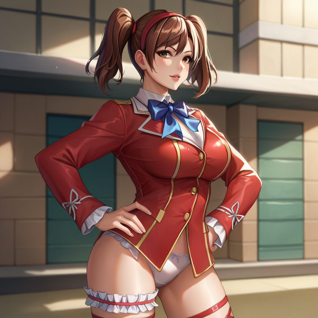 | 학습된 단어 | CSO_Normal_Yuri, 1girl, solo, breasts, large breasts, brown eyes, brown hair, short twintails, twintails, lips, hairband, red jacket, blue bow, long sleeves, thigh strap ,bridal garter, no pants, white panties, underwear, sneakers복사됨! CSO_Pyromaniac_Yuri, 1girl, solo, brown hair, twintails, brown eyes, breasts, large breasts, maid, maid headdress, , gloves, bow, red bow, bowtie, dress, cleavage, white gloves, red bowtie, maid apron, ribbon, black dress, frills, short sleeves ,thigh holster, white thighhighs, wrist cuffs, thigh strap, black footwear복사됨! |