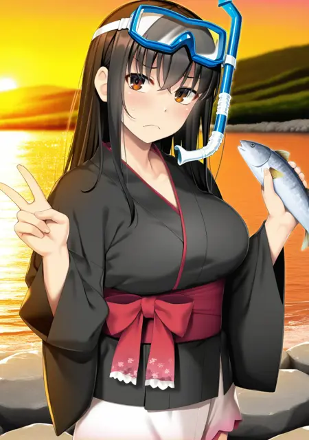 "큰 가슴, 검은 머리, 긴 머리, 갈색 눈"