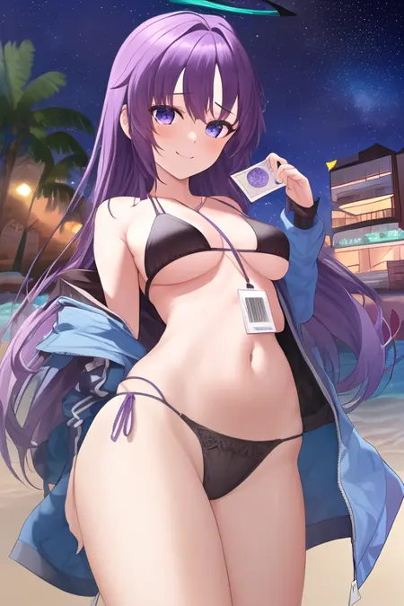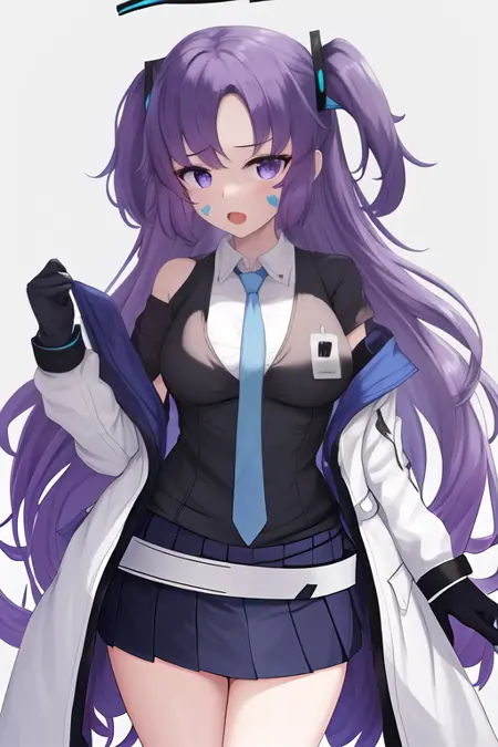 The trigger word is yuuka_bluearchive, and the pruned tags are halo, purple_hair, long_hair, mechanical_halo, purple_eyes, breasts, two_side_up, blue_eyes, parted_bangs, ponytail, medium_breasts. When some features (e.g. hair color) are not so stable at some times, you can add these them into your prompt.