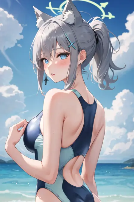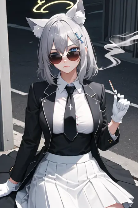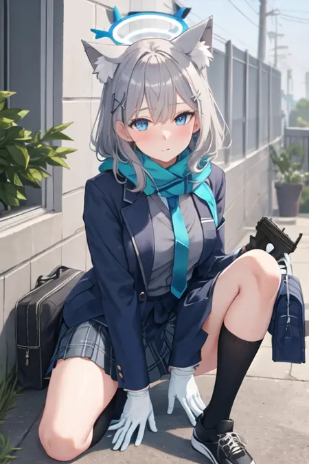 The trigger word is shiroko_bluearchive, and the pruned tags are animal_ears, grey_hair, wolf_ears, animal_ear_fluff, blue_eyes, halo, hair_ornament, cross_hair_ornament, mismatched_pupils, extra_ears, medium_hair, breasts, medium_breasts. When some features (e.g. hair color) are not so stable at some times, you can add these them into your prompt.
