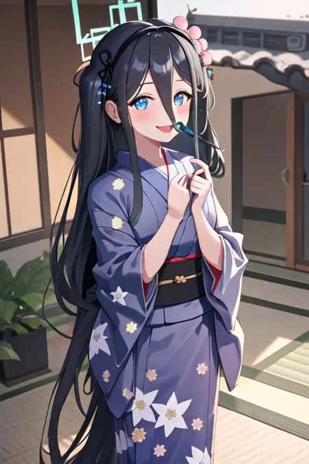 - 축소된 캐릭터 태그는 검은 머리카락, 긴 머리카락, 홀로, 매우 긴 머리카락, 파란 눈, 눈 사이의 머리카락, 한쪽만 올린 머리카락, 머리띠, 검은 머리띠입니다. 캐릭터의 핵심 특징(예: 머리카락 색상)이 안정적이지 않을 때 이러한 태그를 프롬프트에 추가할 수 있습니다.