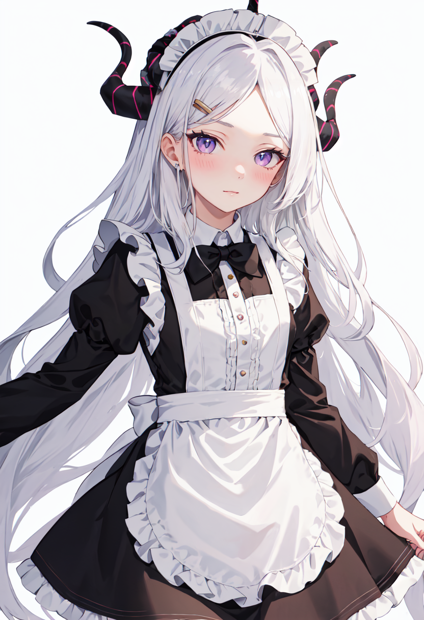 - The pruned character tags are long hair, horns, white hair, purple eyes, demon horns, halo, parted bangs, ahoge, wings, hair ornament, demon wings, hairclip, multiple horns, demon girl, very long hair, sidelocks. You can add them into prompts when core features (e.g. hair color) of character is not so stable.