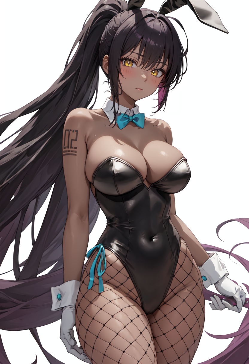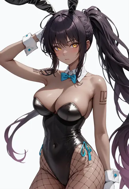 • 已精简的字符标签包括:黑发、深色皮肤女性、深色皮肤、长发、黄眼、乳房、大乳房、光环、极长发、蝴蝶结、马尾、蓝色蝴蝶结、动物耳朵、兔子耳朵、假动物耳朵。当角色的核心特征(例如发色)不够稳定时,您可以将这些标签添加到提示词中