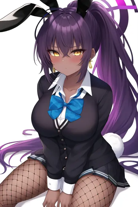 - The pruned character tags are black hair, dark-skinned female, dark skin, long hair, yellow eyes, breasts, large breasts, halo, very long hair, bow, ponytail, blue bow, animal ears, rabbit ears, fake animal ears. You can add them into prompts when core features (e.g. hair color) of character is not so stable.