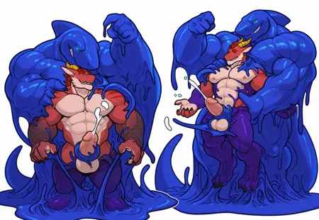 goo creature, goo transformation, transformation, absorption vore, vore, merging, male, male/male,