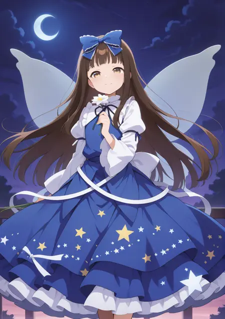 star sapphire, 1girl, solo, brown eyes, brown hair, long hair, hime cut, blunt bangs, fairy, fairy wings,