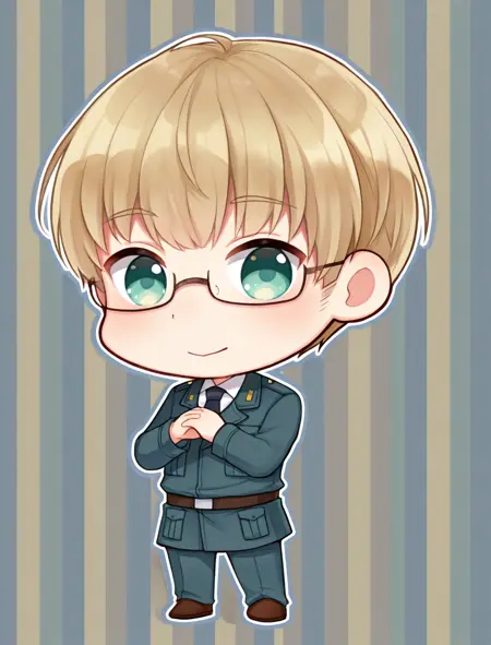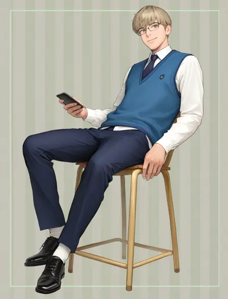 military uniform, blue jacket, necktie, white shirt, belt, blue pants