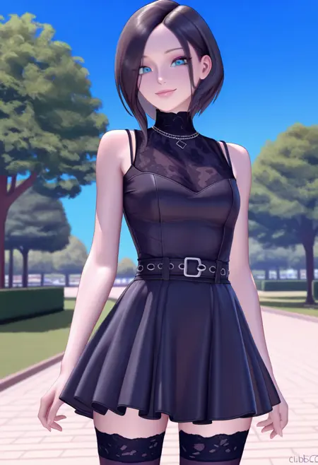 의상 - ClubDrs, 소매 없는 드레스, 검은 드레스, 짧은 드레스, 레이스 장식된 하의