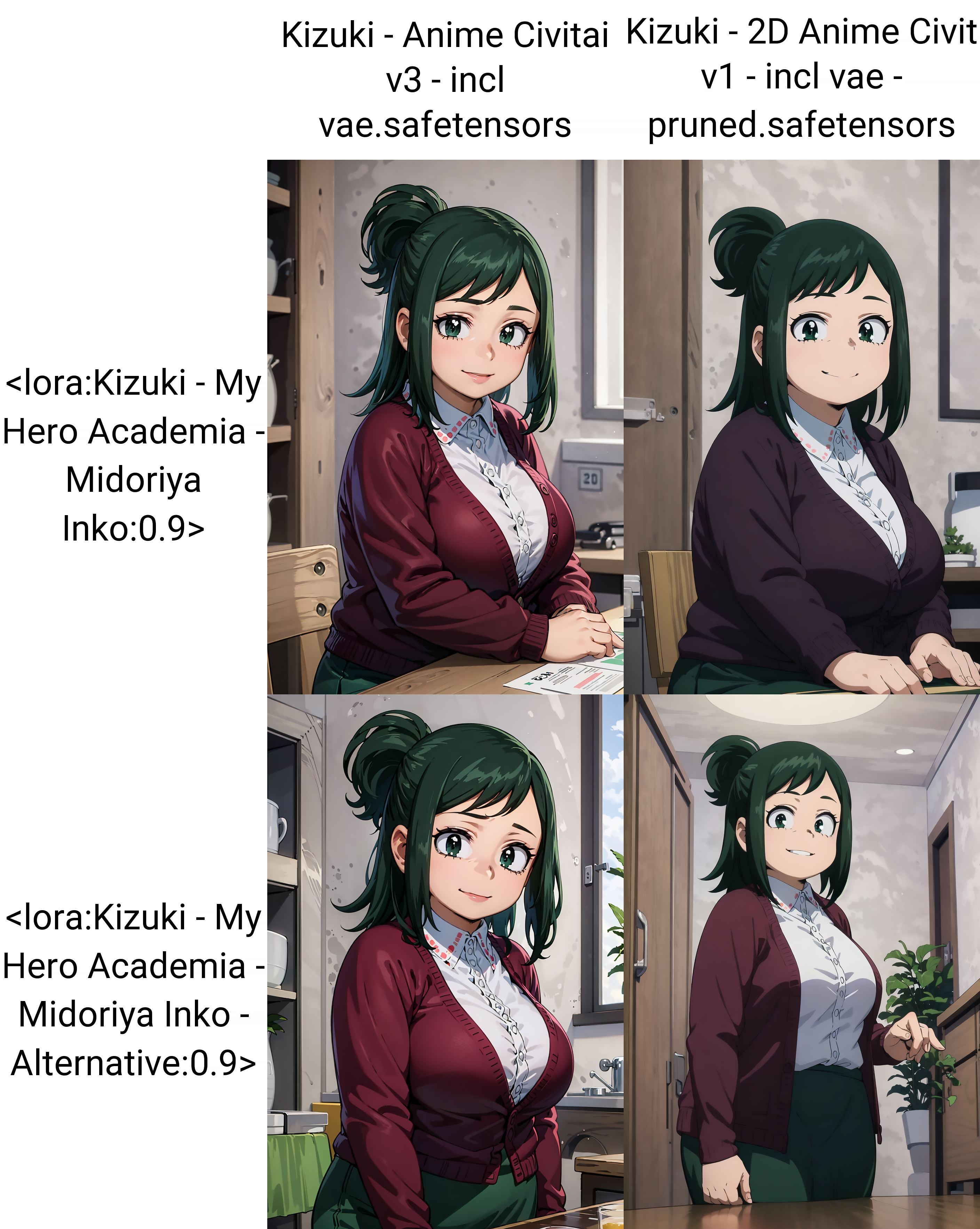 Trigger word: midoriya inko, green hair, short hair, short ponytail, green eyes, large breasts, curvy, plump