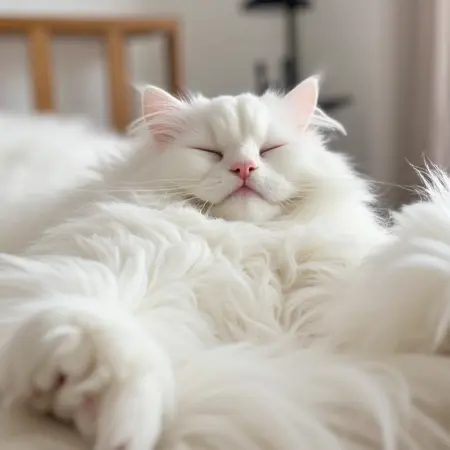 이것은 올리버라는 고양이의 모델로, 흰색 래그돌 페르시안 혼합 품종입니다.