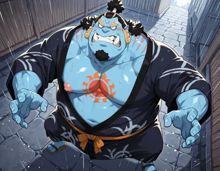 使用方法:ジンベエ、魚人、色付きの肌、お腹、歯、牙、赤い太陽のタトゥー、黒髪