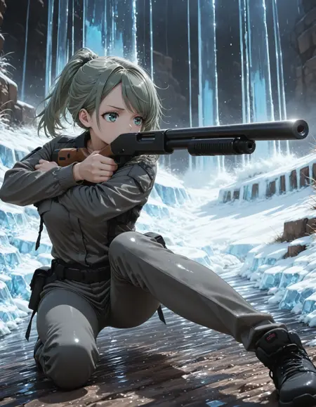 この LoRA は、座った姿勢でライフルを腕に載せ、一方の脚で支えるスナイパーのポーズ(座ったスナイパーのクレードル)を再現します。この LoRA は座った姿勢に焦点を当てていますが、膝をついた姿勢も実現できます。
