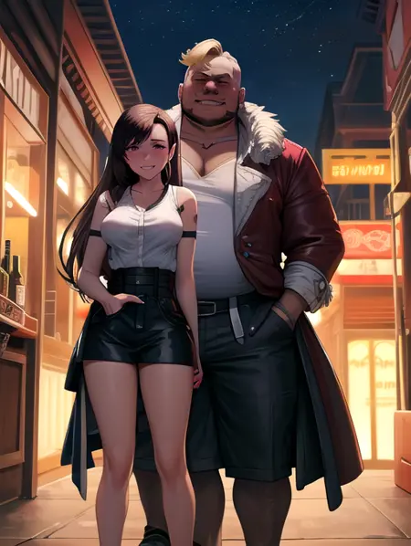 요청을 받아 제작되었습니다! 솔직히 말해, 이 캐릭터가 만들어낸 밈들과 도진들을 알고 있지만, 저는 사실상 FFVII을 제대로 플레이해보지 않아 그에 대해 특별히 말할 수 없습니다. 생성 측면에서, LoRA는 그의 눈과 손을 생성하는 데 문제가 있는 것 같습니다. 이러한 문제를 부드럽게 해결하려면 디테일러나 고해상도 업스케일을 꼭 추천드립니다. 또 다른 점으로, 테스트 생성 중에 티파와 함께 그를 생성하는 것이 정말 쉬웠다는 것을 발견했습니다. 제 추측으로는, 대부분의 애니메이션 모델에 티파가 어느 정도 학습되어 있기 때문인 것 같습니다. 제 데이터셋에는 코르니오와 티파를 함께 그린 이미지를 거의 사용하지 않았기 때문이죠.