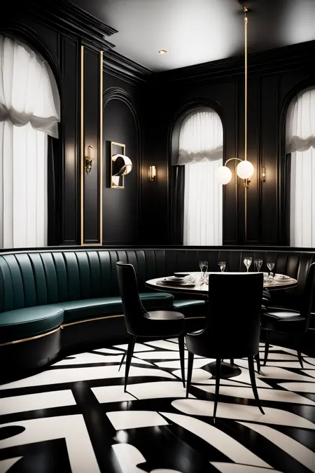 • 개념: 분위기 있는 조명, 우아한 곡선, 단색 팔레트, 기하학적 패턴.