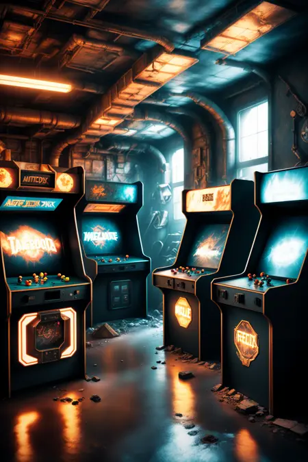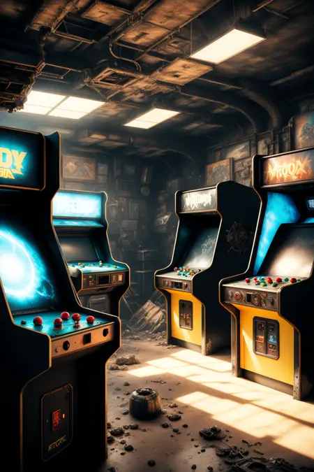 개념: 폐허 미학, 임시 구조물, 거친 질감.