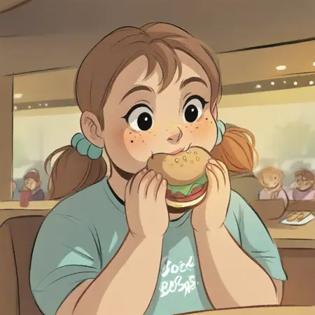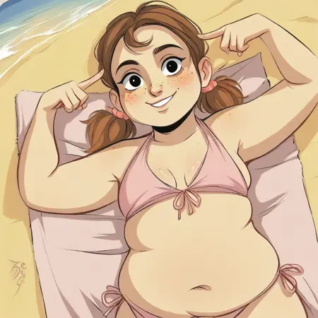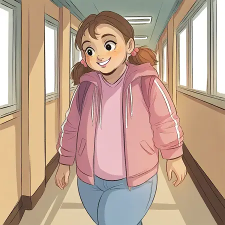 fani, sara y las goleadoras, 棕色头发,低马尾,黑色眼睛,脸上有雀斑,丰满
