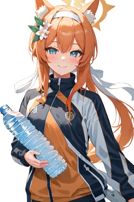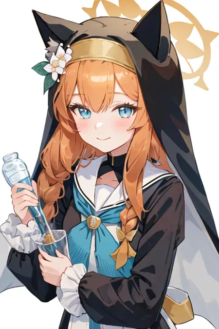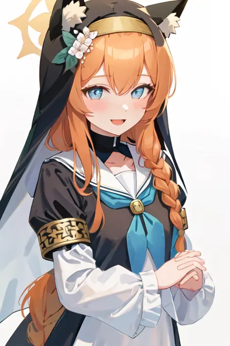 - The pruned character tags are animal ears, orange hair, long hair, halo, yellow halo, blue eyes, animal ear fluff, hair ornament, hair flower, hair between eyes, hairband, white hairband, breasts. You can add them into prompts when core features (e.g. hair color) of character is not so stable.