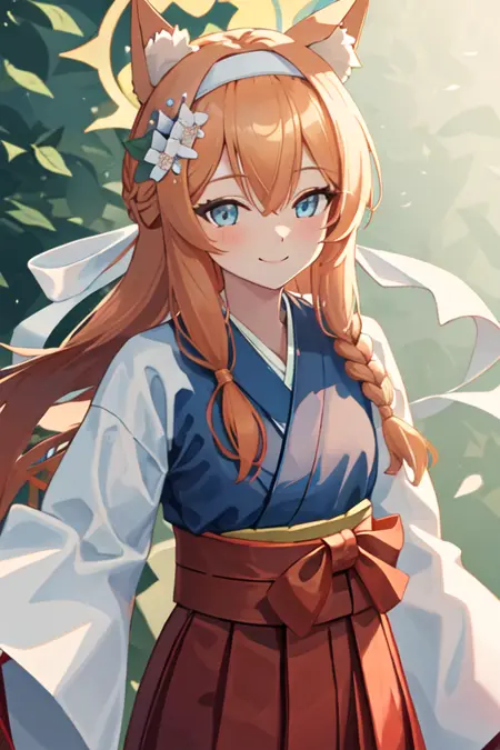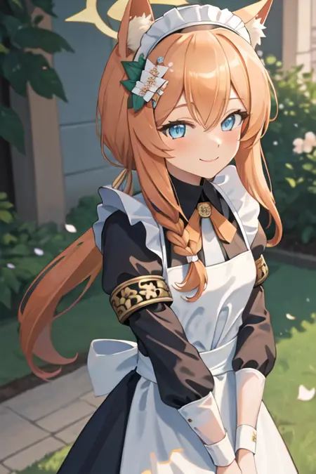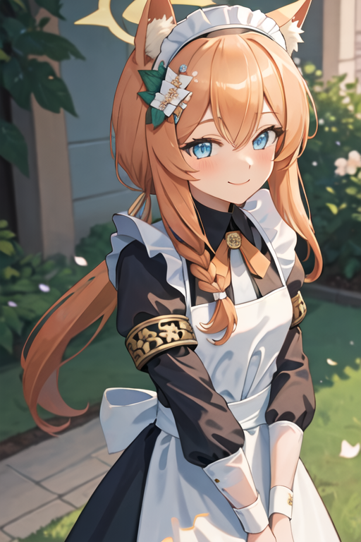 The trigger word is mari_bluearchive, and the pruned tags are animal_ears, orange_hair, long_hair, halo, yellow_halo, blue_eyes, animal_ear_fluff, hair_ornament, hair_flower, hair_between_eyes, hairband, white_hairband, breasts. When some features (e.g. hair color) are not so stable at some times, you can add these them into your prompt.