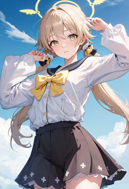 트리거 단어는 hifumi_bluearchive이며, 추출된 태그는 long_hair, twintails, low_twintails, light_brown_hair, halo, yellow_eyes, breasts입니다. 어떤 특징(예: 머리색)이 불안정할 때 이러한 태그를 프롬프트에 추가할 수 있습니다.