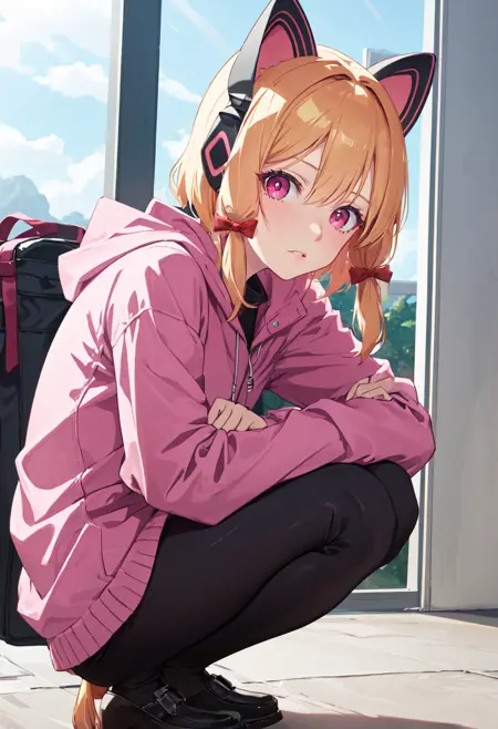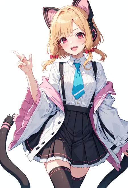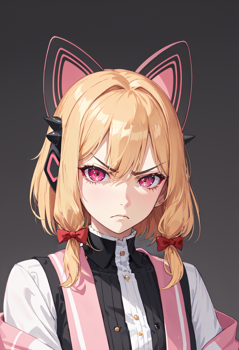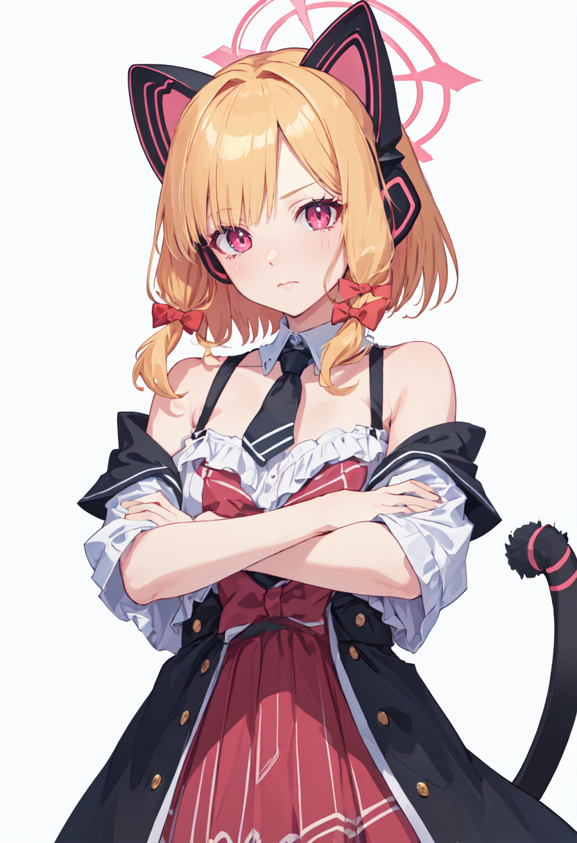 - The pruned character tags are blonde hair, animal ears, fake animal ears, animal ear headphones, headphones, short hair, bow, halo, cat ear headphones, hair bow, red bow, pink eyes, pink halo, tail, cat tail, red eyes. You can add them into prompts when core features (e.g. hair color) of character is not so stable.