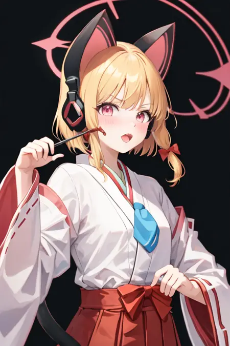 - The pruned character tags are blonde hair, animal ears, fake animal ears, animal ear headphones, headphones, short hair, bow, halo, cat ear headphones, hair bow, red bow, pink eyes, pink halo, tail, cat tail, red eyes. You can add them into prompts when core features (e.g. hair color) of character is not so stable.