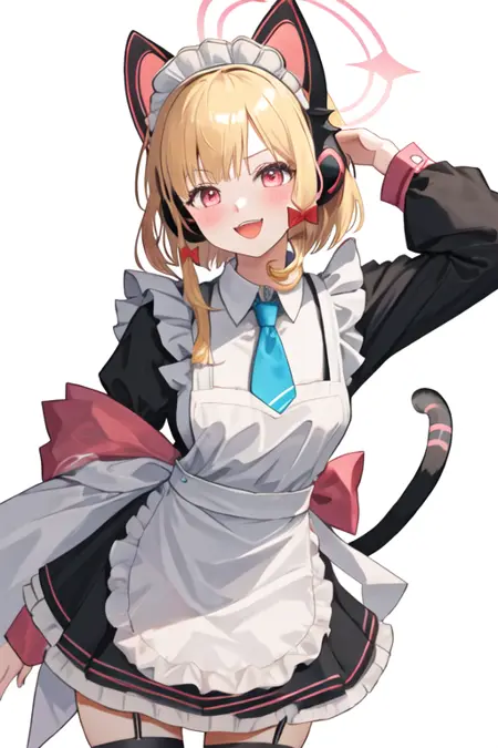 The trigger word is momoi_bluearchive, and the pruned tags are blonde_hair, animal_ears, fake_animal_ears, animal_ear_headphones, headphones, short_hair, bow, halo, cat_ear_headphones, hair_bow, red_bow, pink_eyes, pink_halo, tail, cat_tail, red_eyes. When some features (e.g. hair color) are not so stable at some times, you can add these them into your prompt.