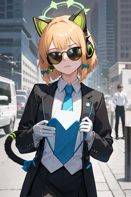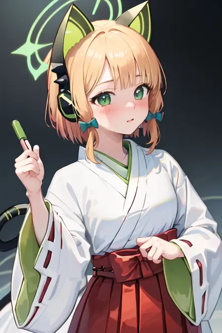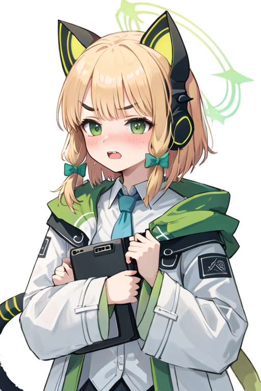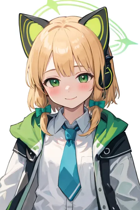 The trigger word is midori_bluearchive, and the pruned tags are blonde_hair, animal_ears, fake_animal_ears, animal_ear_headphones, headphones, bow, short_hair, cat_ear_headphones, halo, green_eyes, hair_bow, tail, green_halo, cat_tail, green_bow. When some features (e.g. hair color) are not so stable at some times, you can add these them into your prompt.