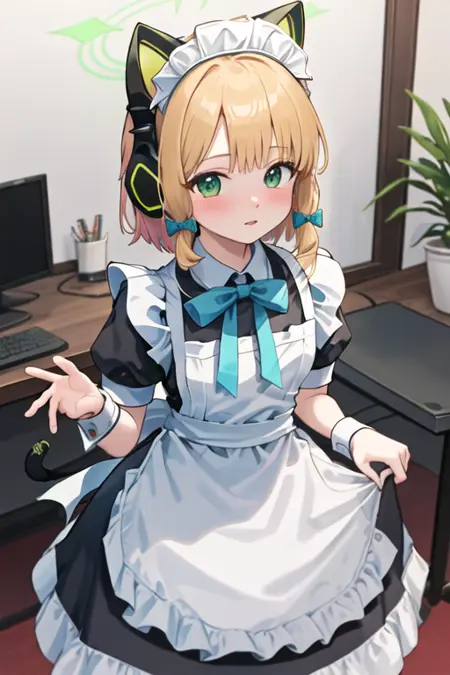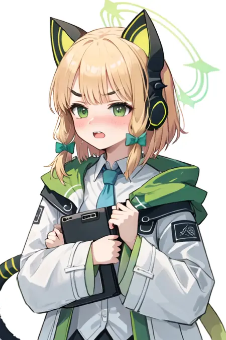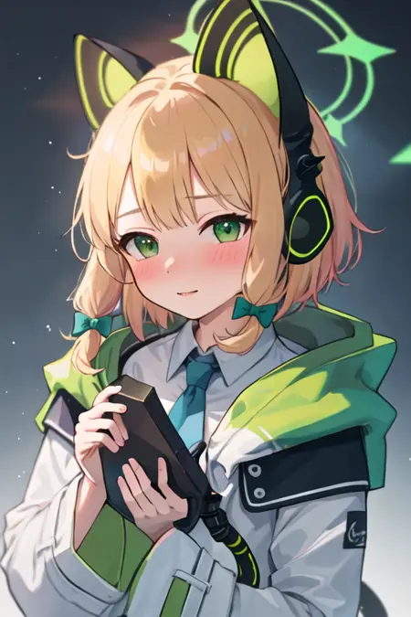 トリガーワードはmidori_bluearchive、削除されたタグはblonde_hair, animal_ears, fake_animal_ears, animal_ear_headphones, headphones, bow, short_hair, cat_ear_headphones, halo, green_eyes, hair_bow, tail, green_halo, cat_tail, green_bowです。あるときキャラクターの一部の特徴(例:髪の色)が不安定な場合は、これらのタグをプロンプトに追加してください。