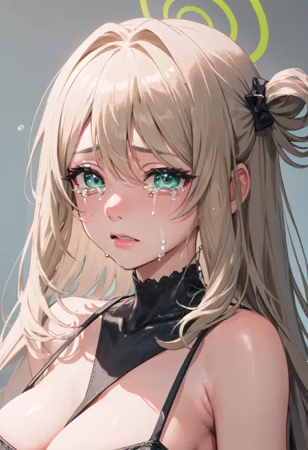 - The pruned character tags are long hair, breasts, halo, green eyes, large breasts, light brown hair, hat, sun hat, white headwear. You can add them into prompts when core features (e.g. hair color) of character is not so stable.