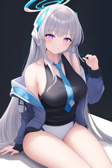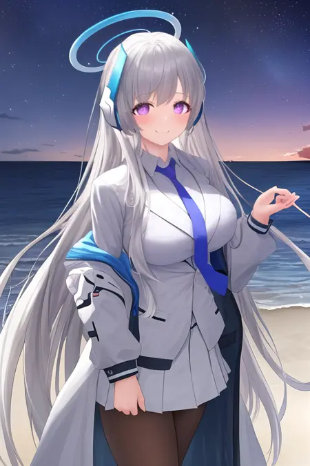 The trigger word is noa_bluearchive, and the pruned tags are long_hair, halo, mechanical_halo, grey_hair, purple_eyes, breasts, white_hair, large_breasts, very_long_hair, blunt_bangs. When some features (e.g. hair color) are not so stable at some times, you can add these them into your prompt.