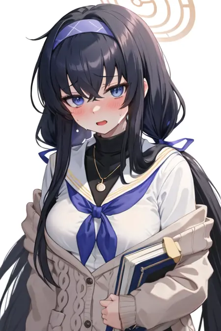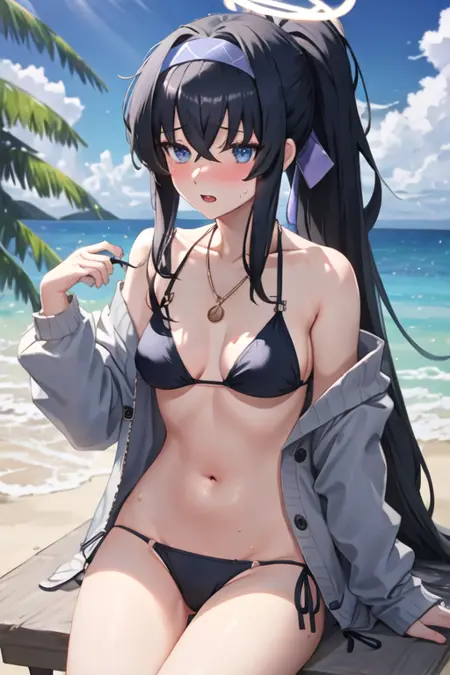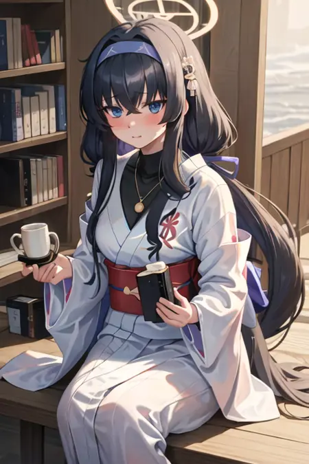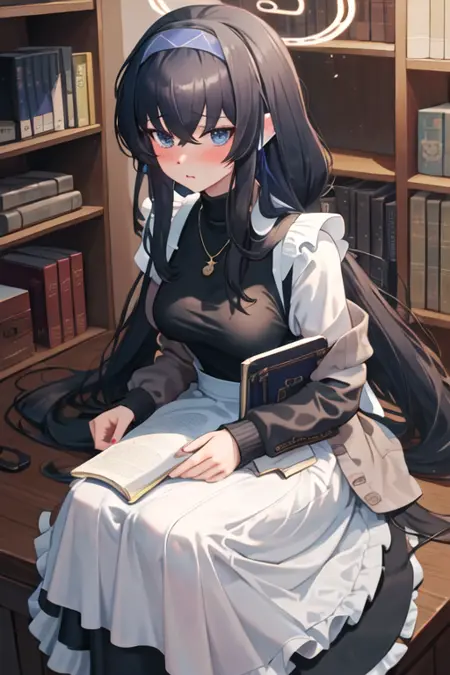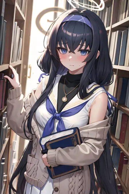 The trigger word is ui_bluearchive, and the pruned tags are long_hair, black_hair, hairband, halo, bags_under_eyes, hair_between_eyes, blue_hairband, very_long_hair, blue_eyes, breasts, purple_eyes. When some features (e.g. hair color) are not so stable at some times, you can add these them into your prompt.