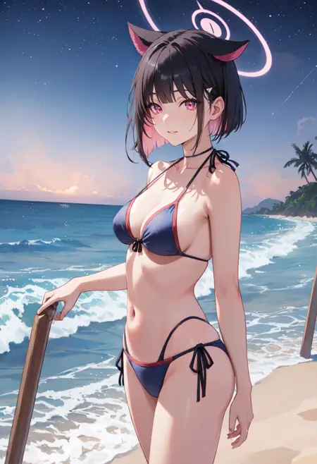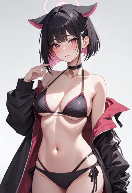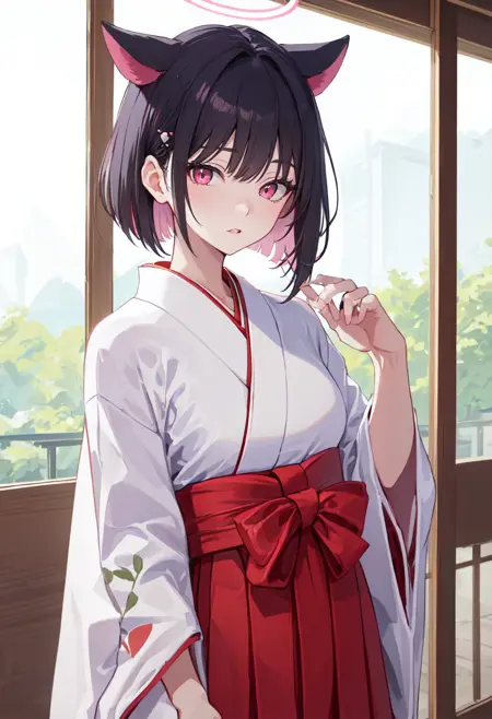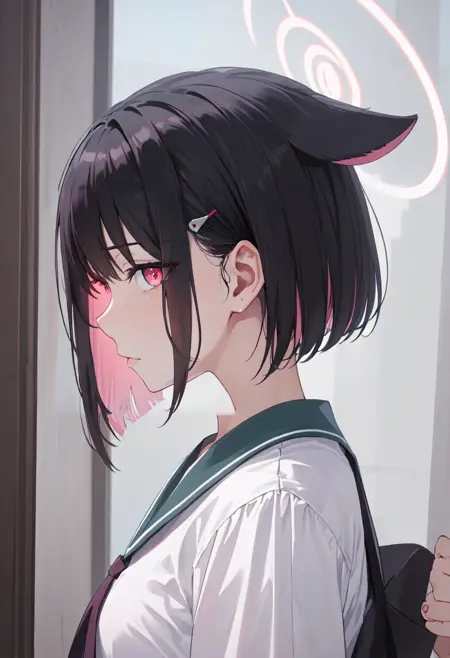 触发词为 kazusa_bluearchive,精简标签为 black_hair, cat_ears, animal_ears, colored_inner_hair, multicolored_hair, pink_hair, short_hair, halo, two-tone_hair, extra_ears, red_eyes, hair_ornament, hairclip, pink_halo, breasts, pink_eyes。当某些特征(如发色)有时不够稳定时,您可以将这些标签添加到提示词中。