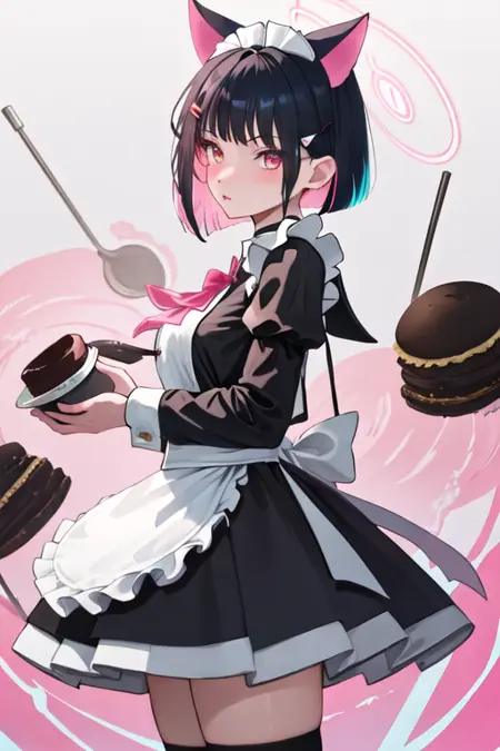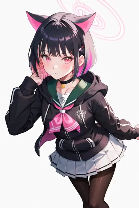 - 省略されたキャラクタータグは、黒髪、猫耳、動物耳、内側の色付き髪、多色髪、ピンク髪、短髪、ハロー、ツートーン髪、追加の耳、赤い目、髪飾り、ヘアクリップ、ピンクハロー、胸、ピンクの目です。キャラクターの主要な特徴(例:髪の色)が安定しない場合、これらのタグをプロンプトに追加できます。